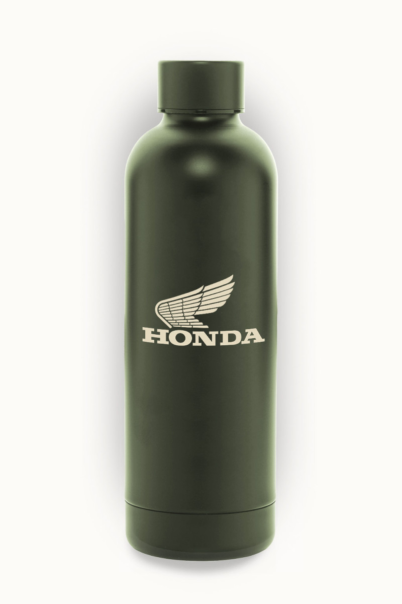 Honda Wing Logo HTG Waterbottle este o sticla termica eleganta in nuanta Green, realizata din otel, cu logo-ul iconic Honda Wing. Pastreaza bauturile fierbinti sau reci timp de mai multe ore, combinand functionalitatea cu un stil modern inspirat din racing heritage.
